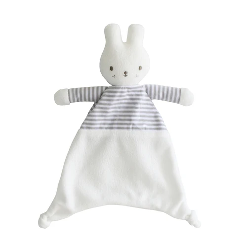 A super cute and soft baby Bunny comforter. Designed to be snuggled with and provide comfort to young babies!
