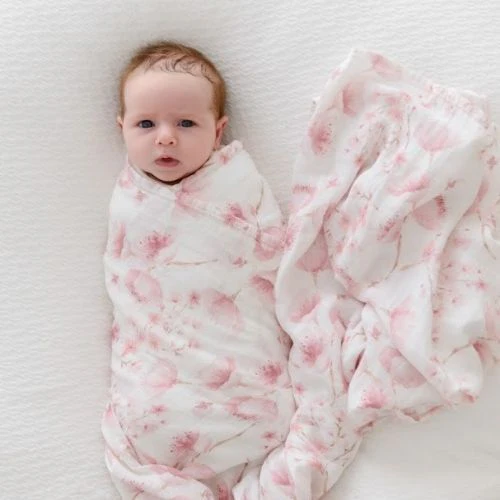 Our watercolour Painted organic bamboo cotton swaddles in supper cute designs. The perfect print for those with beautiful baby girls and boys.